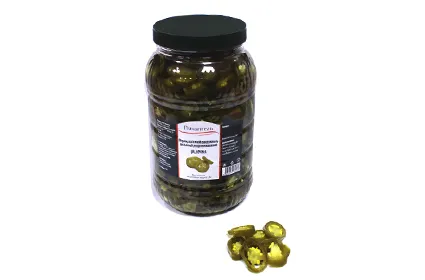 Перец зеленый халапеньо, резаный, маринованный 3 кг, пластик / Green jalapeno pepper sliced. 3 kg. PET jar