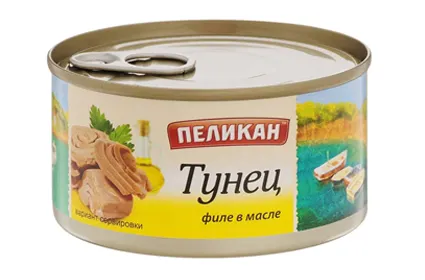 Тунец, филе в растительном масле "ПЕЛИКАН" (Таиланд) 185 г жесть / Tuna, fillet in vegetable oil "Pelican" Thailand, 185 g tin