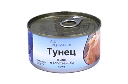 Тунец филе в собственном соку AQUAMARR 185 г жесть, Таиланд / Tuna, chunk in brineAQUAMARR 0.185 kg tin, Thailand